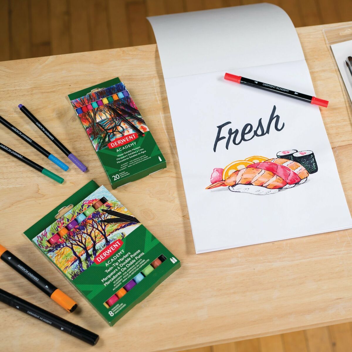 Return to the office without forgetting a single thing! Buy Set of Felt Tip Pens DERWENT Academy Multicolour Double-ended 8 Pieces and be the envy of your colleagues!